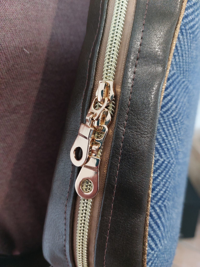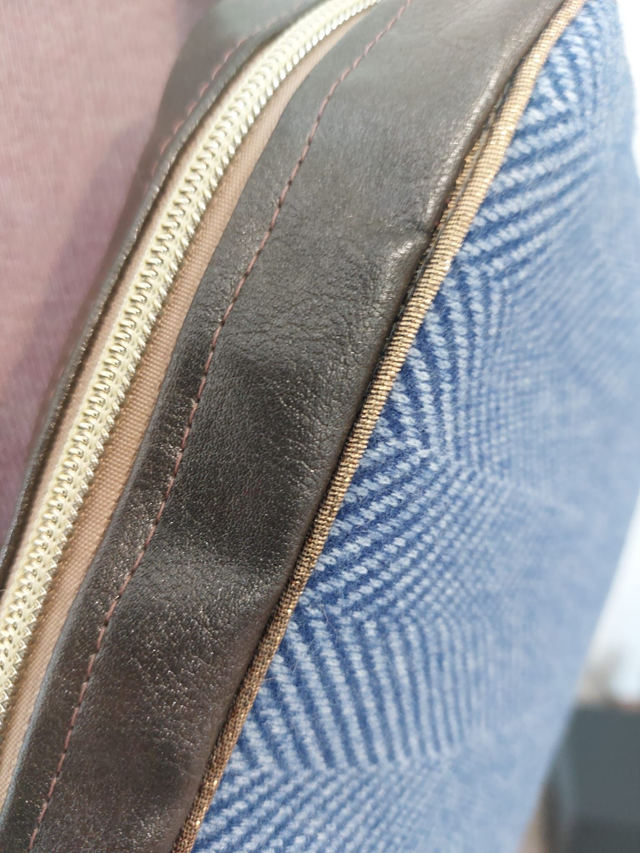 👜 Sac banane en lainage bleuté et en simili cuir couleur Marron