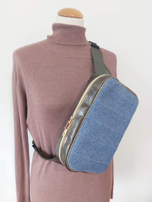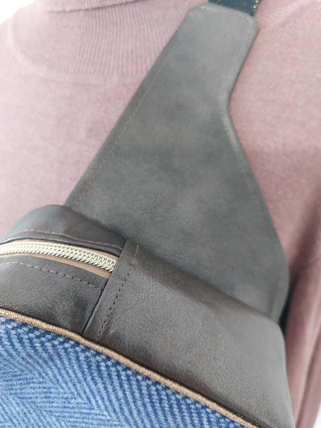 Ce sac banane en tissu lainage et simili cuir associe élégance et confort pour t’accompagner en toutes saisons, que ce soit en ville ou en balade.