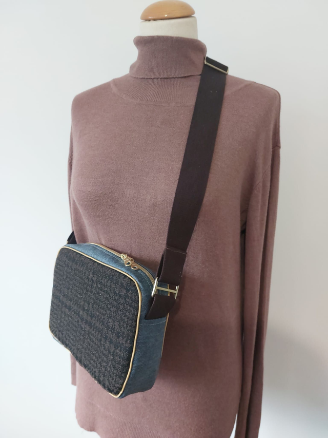 Sac bandouillère en lainage et simili cuir